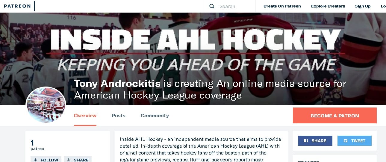 With a minimum $3 per month pledge via our Patreon page, you'll have full access to all exclusive stories, features, and 100% of the content produced by our dedicated team of reporters and photographers, credentialed media members across the AHL.